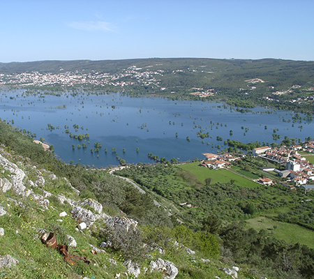 Devido à característica do substrato rochoso, a área em questão, apresenta características muito próprias relativamente à flora, predominando o matagal de carrasco, carvalhal e olival.